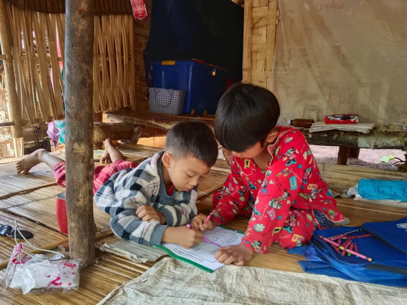 In Karenni State, daily clashes continue between junta troops and local revolutionary forces. Therefore, many school-age children have had to flee with their families into the forests and mountains. They are just continuing their learning in whatever way and with whatever resources they can find.