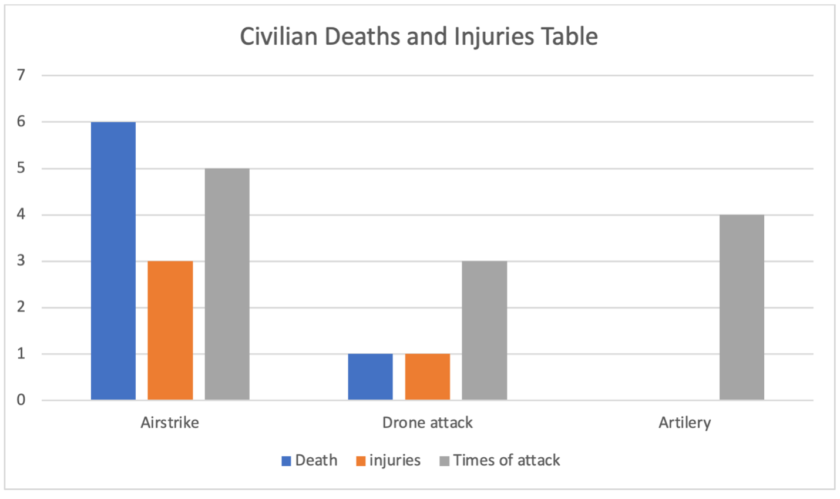 As a result of the airstrikes, 6 civilians were killed, and 3 were injured. Drone attacks caused 1 death and 1 injury. Artillery attacks resulted in no casualties but caused property and food supply damage. These figures are compiled from information obtained by Kantarawaddy Times, and the actual numbers on the ground may be higher than those listed.