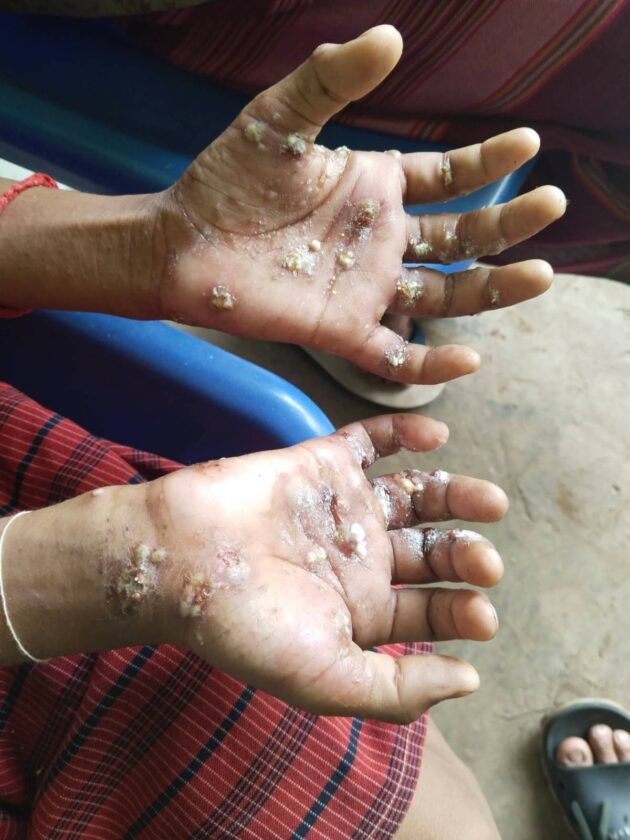 “The wounds have pus. Sometimes they feel unwell and have fever. Their appetite is poor. Since their hands and feet are affected, they find it difficult to eat properly. We usually give antiseptics and injections. But since the infection has been ongoing for a long time, our medicine supplies are no longer sufficient,” he explained.